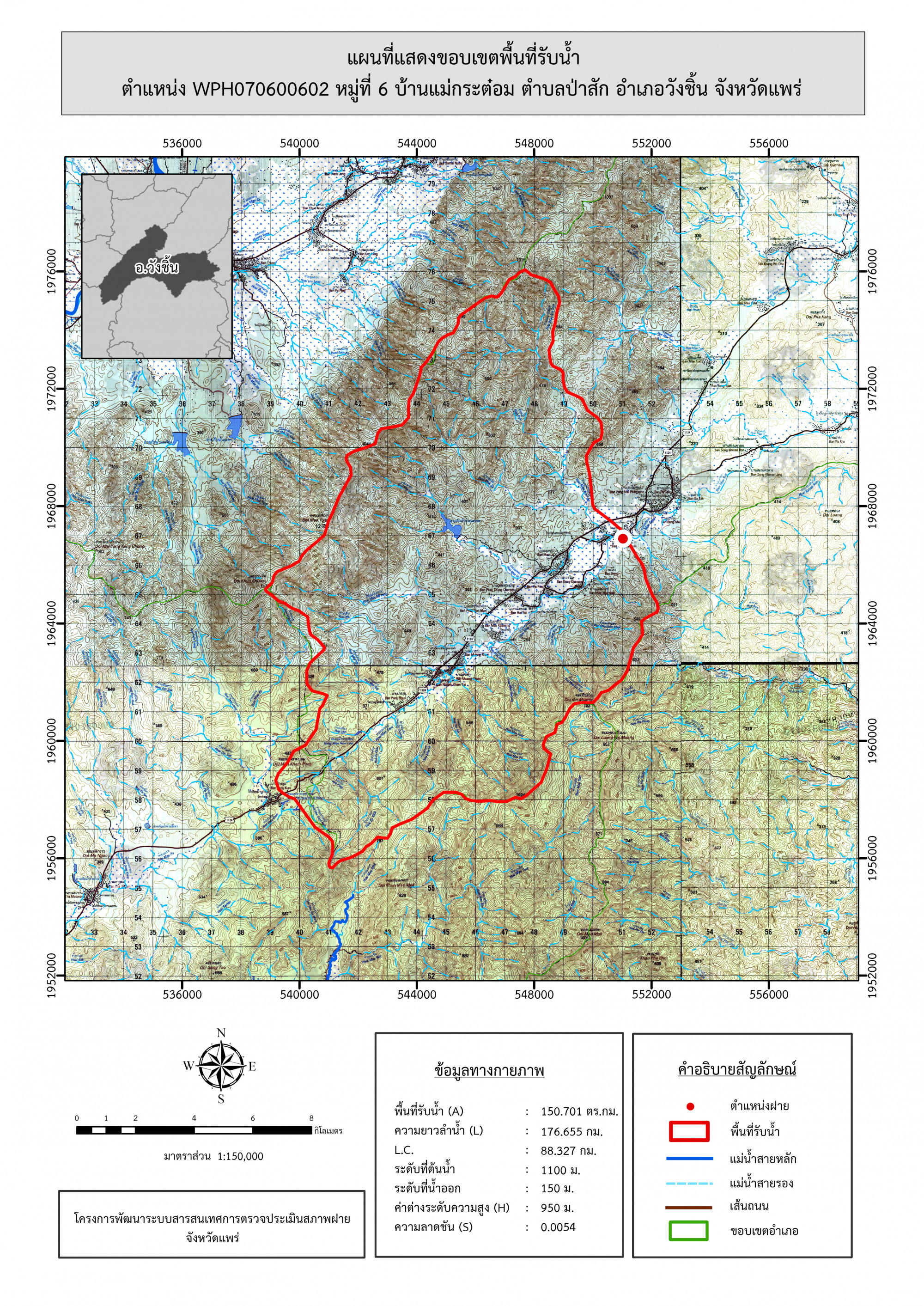 รูปภาพแผนที่แสดงขอบเขตพื้นที่รับน้ำ