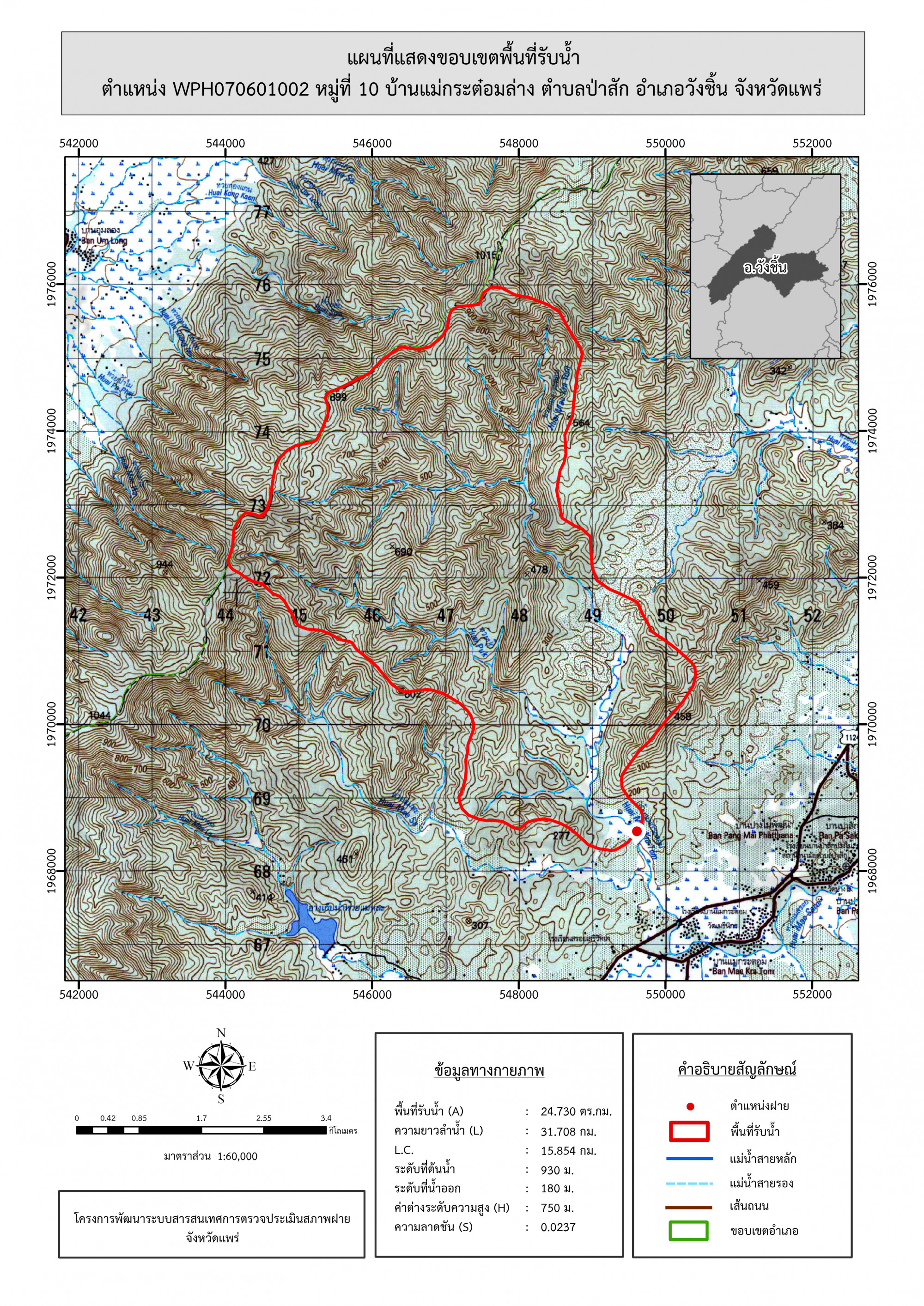 รูปภาพแผนที่แสดงขอบเขตพื้นที่รับน้ำ