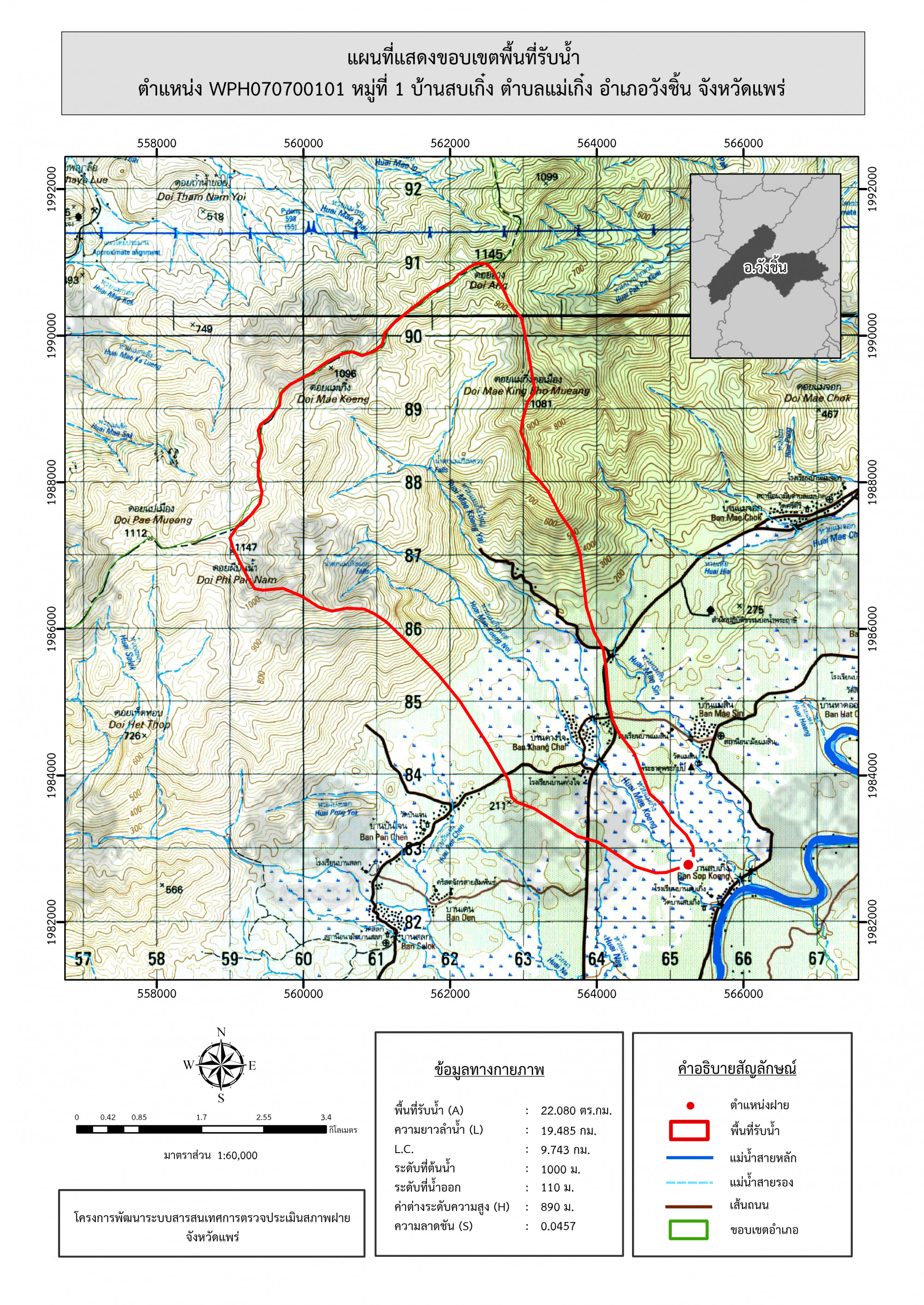 รูปภาพแผนที่แสดงขอบเขตพื้นที่รับน้ำ