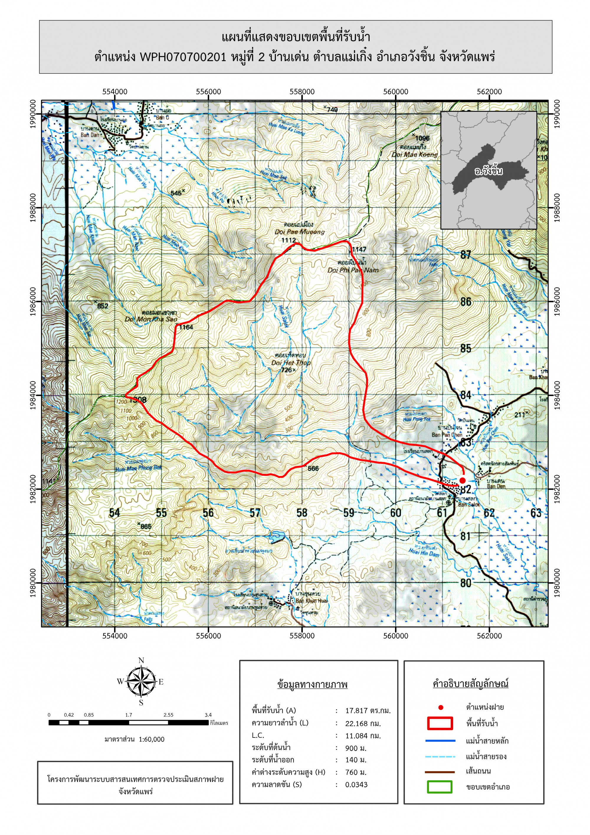 รูปภาพแผนที่แสดงขอบเขตพื้นที่รับน้ำ