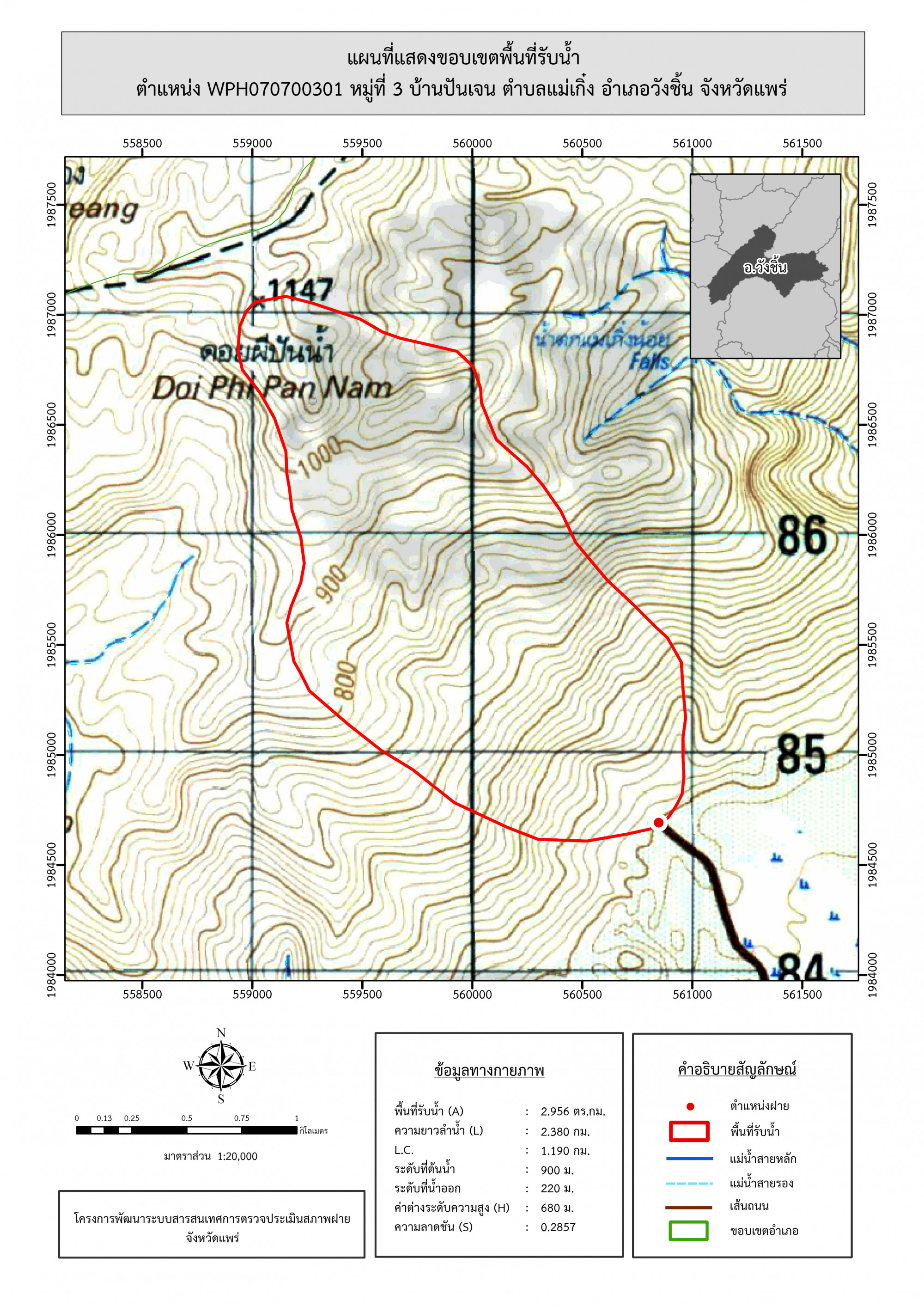 รูปภาพแผนที่แสดงขอบเขตพื้นที่รับน้ำ
