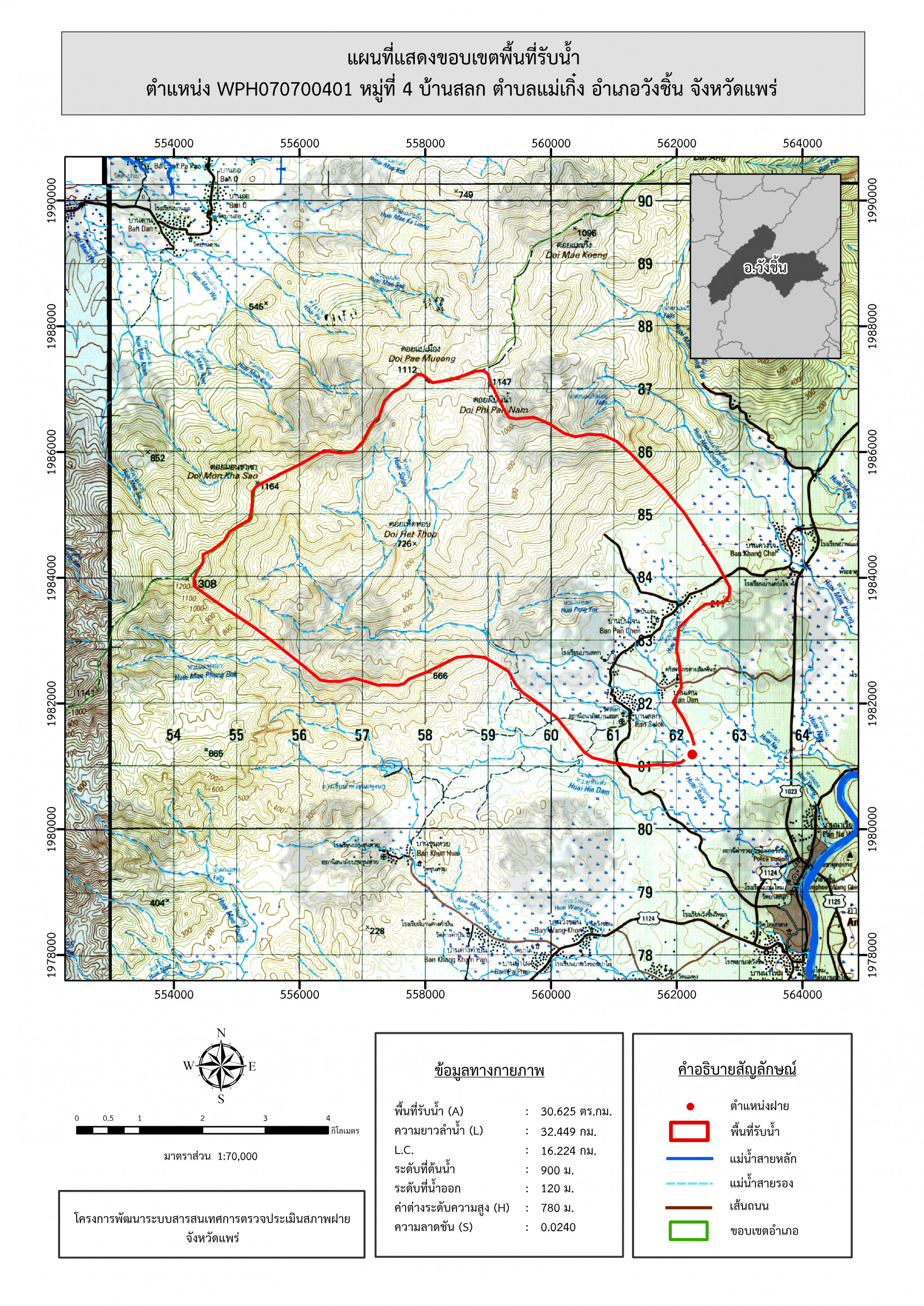 รูปภาพแผนที่แสดงขอบเขตพื้นที่รับน้ำ