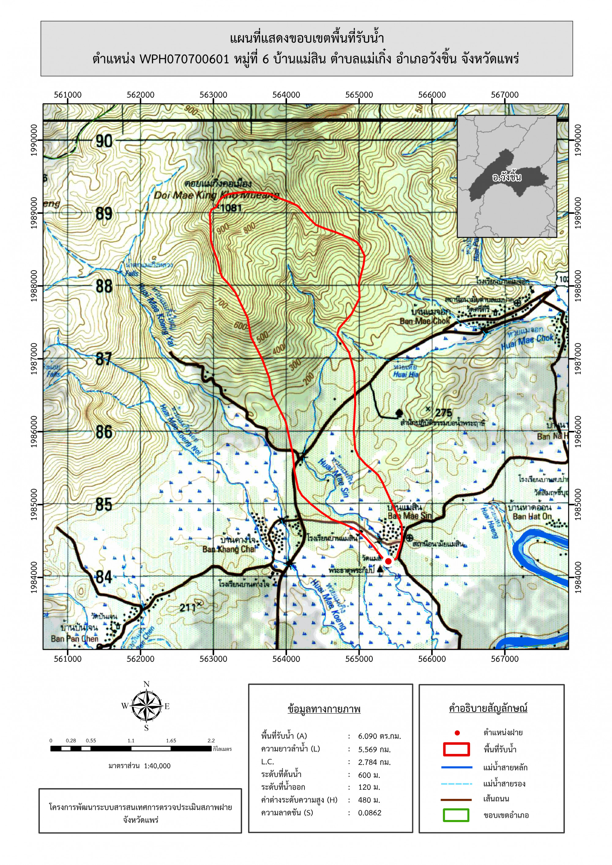 รูปภาพแผนที่แสดงขอบเขตพื้นที่รับน้ำ