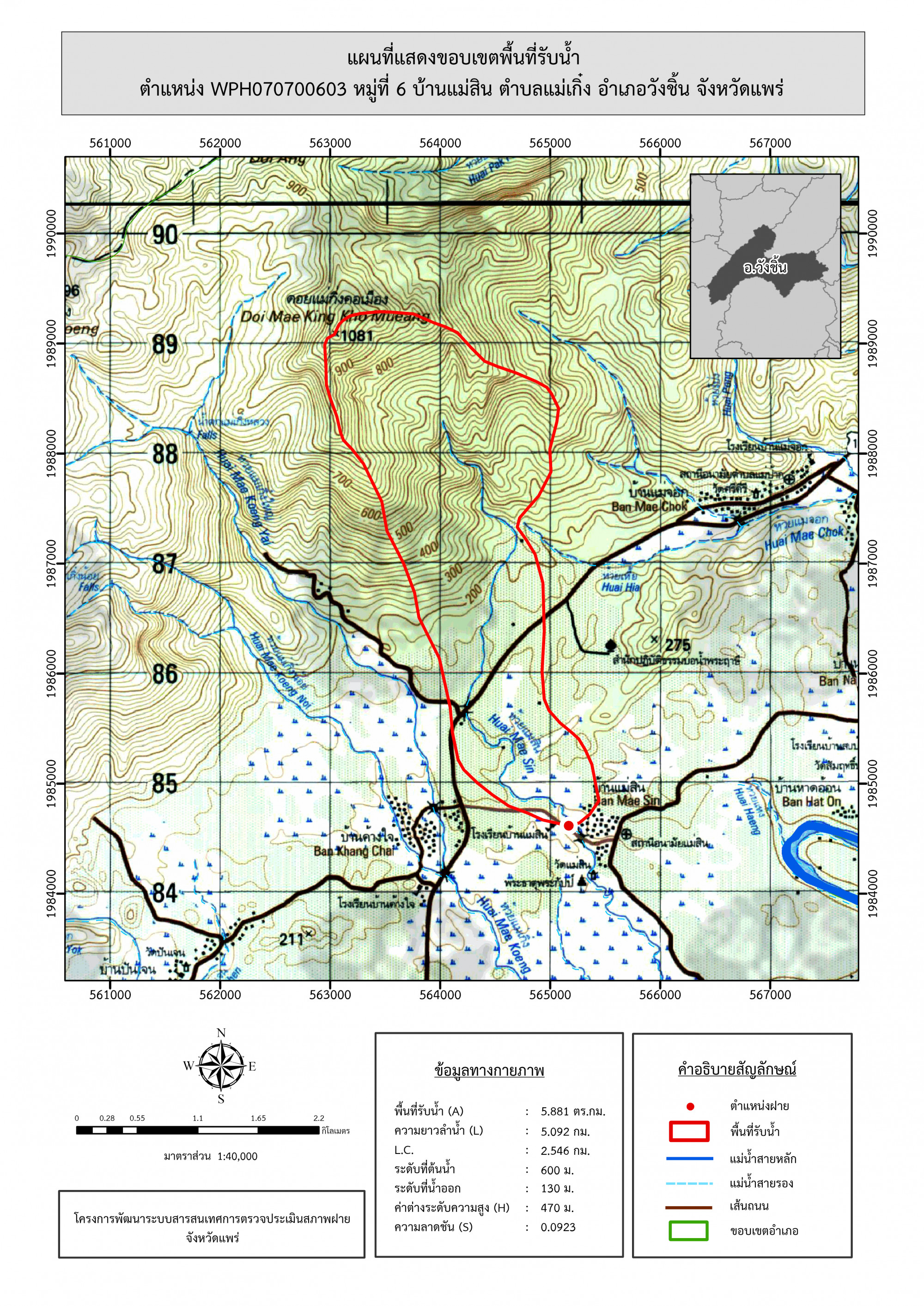 รูปภาพแผนที่แสดงขอบเขตพื้นที่รับน้ำ
