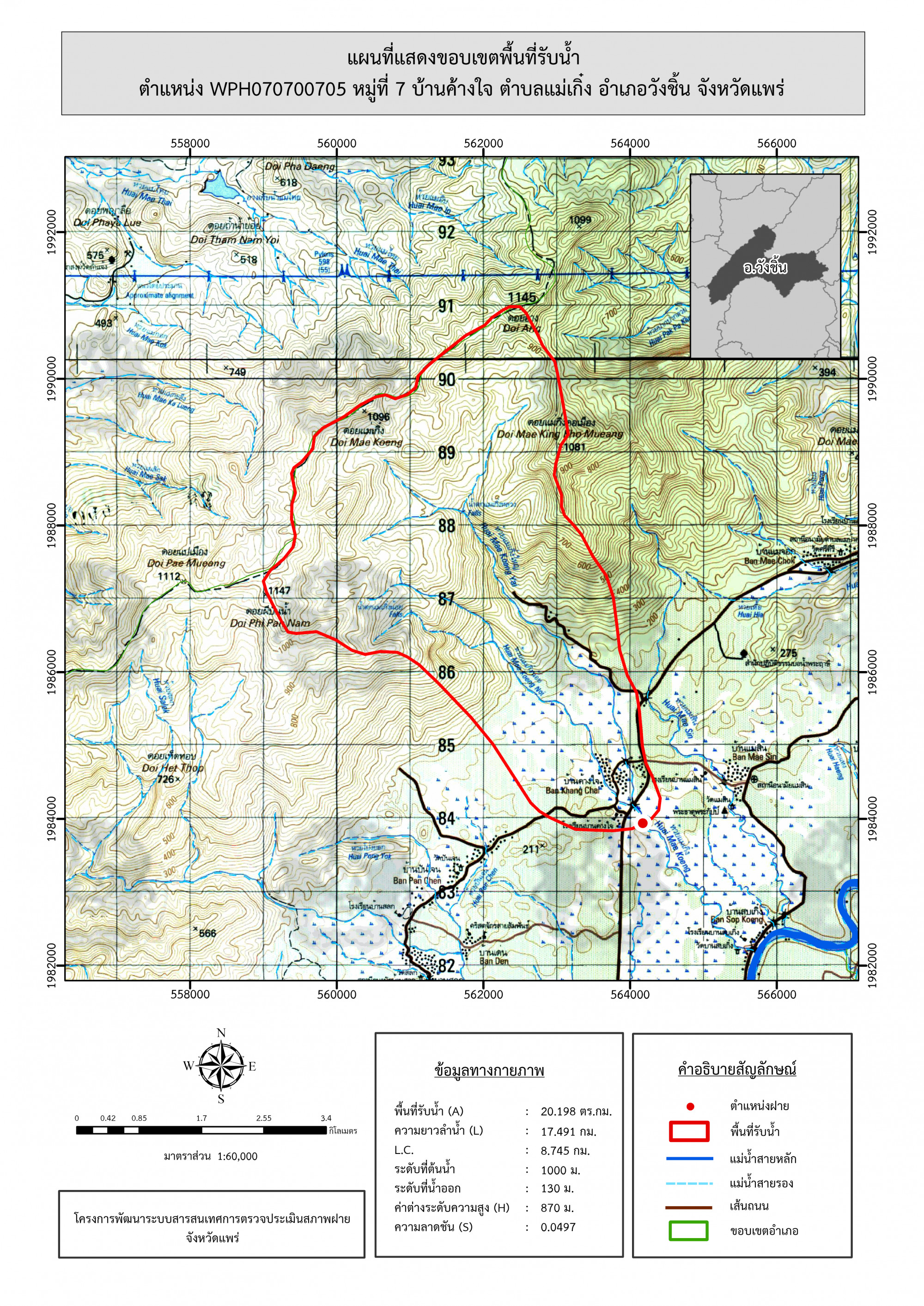 รูปภาพแผนที่แสดงขอบเขตพื้นที่รับน้ำ