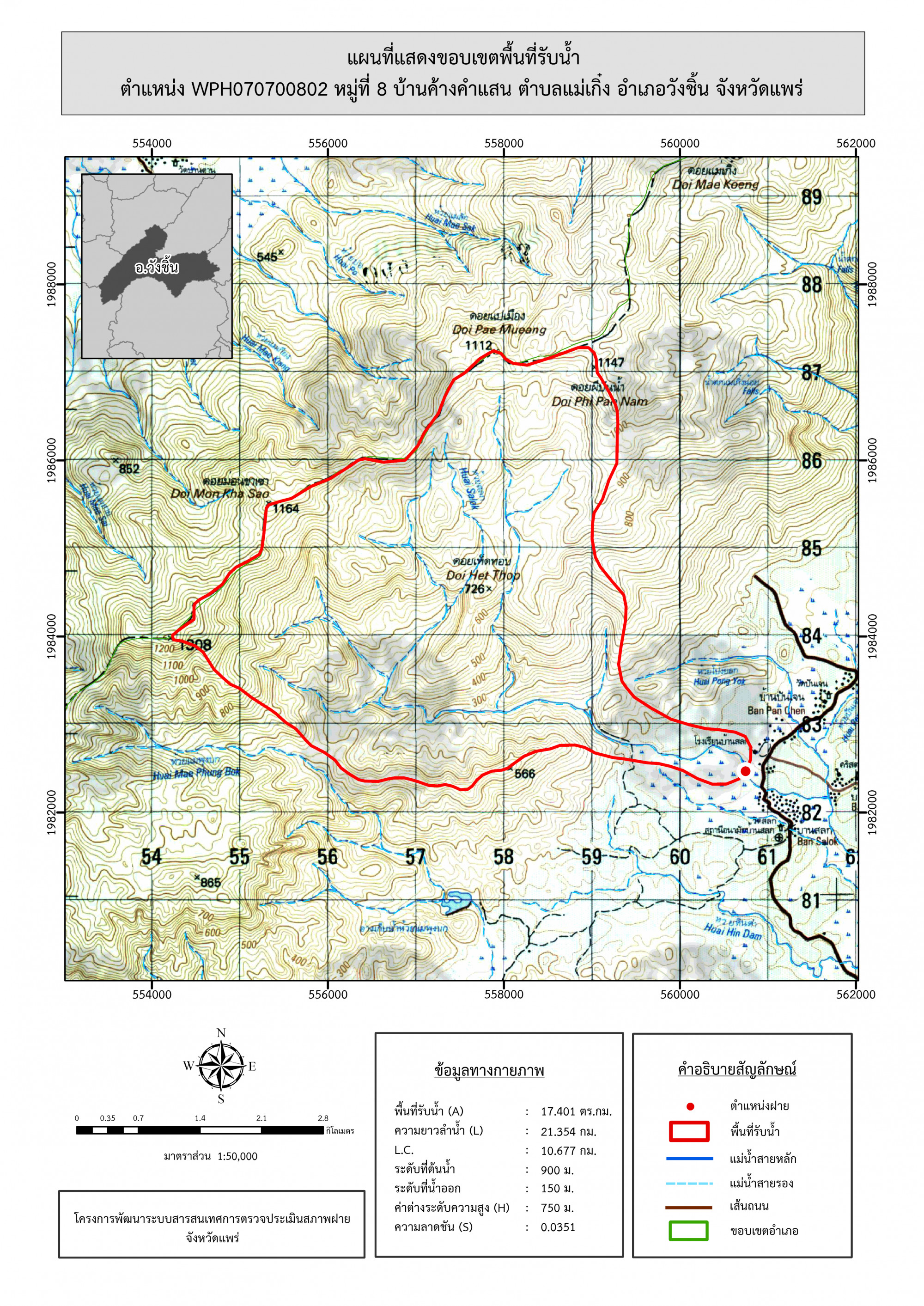 รูปภาพแผนที่แสดงขอบเขตพื้นที่รับน้ำ