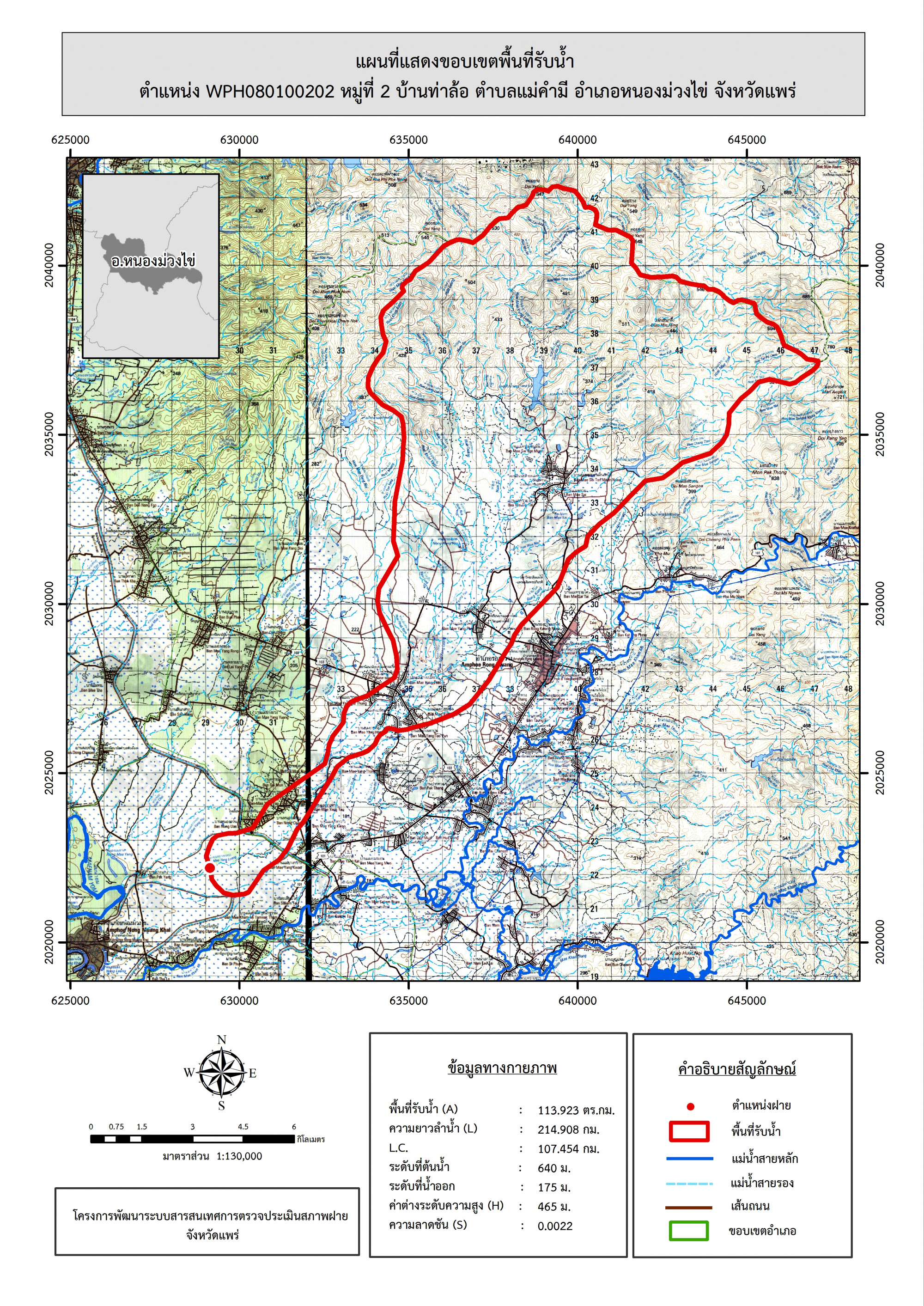 รูปภาพแผนที่แสดงขอบเขตพื้นที่รับน้ำ