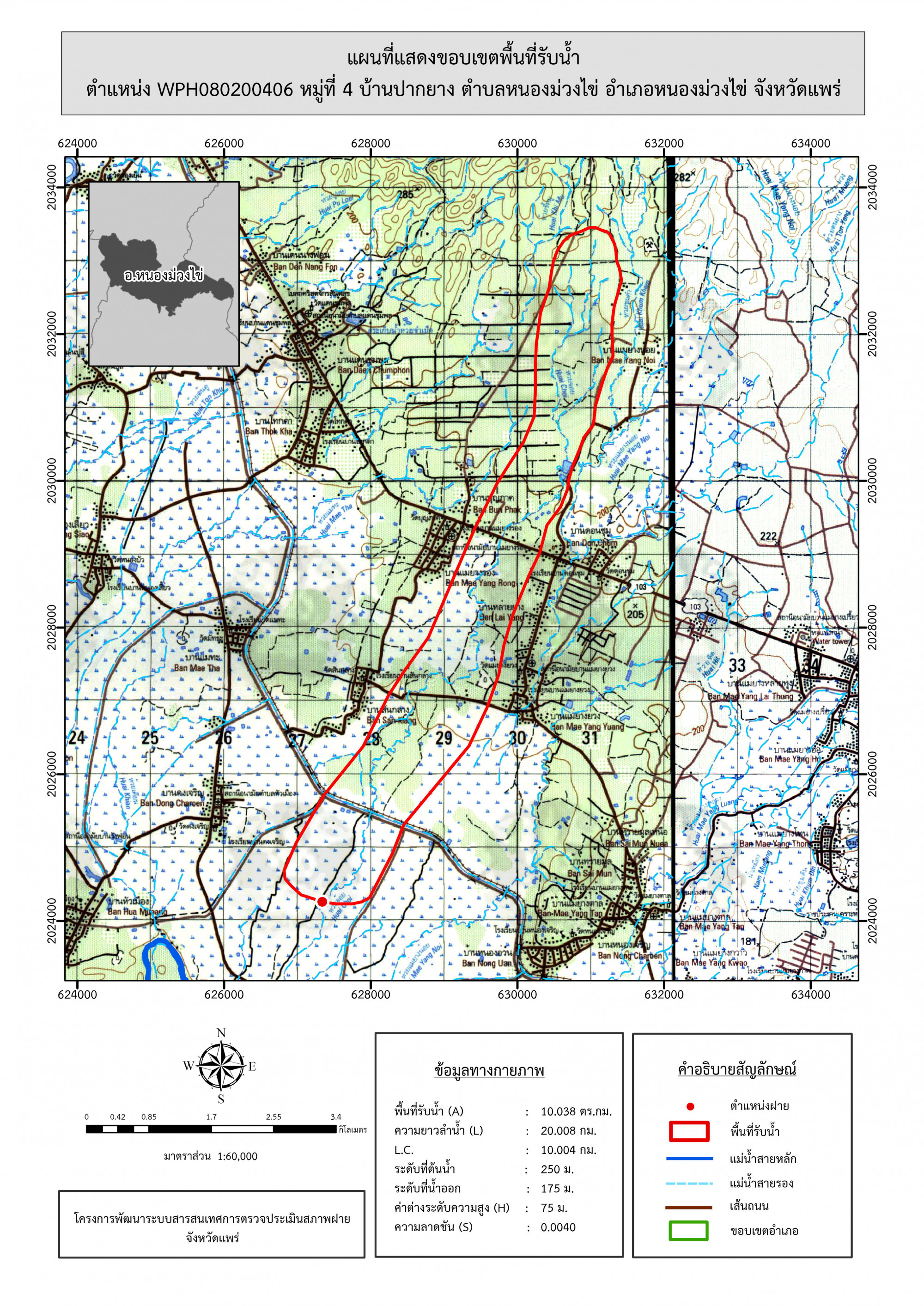 รูปภาพแผนที่แสดงขอบเขตพื้นที่รับน้ำ