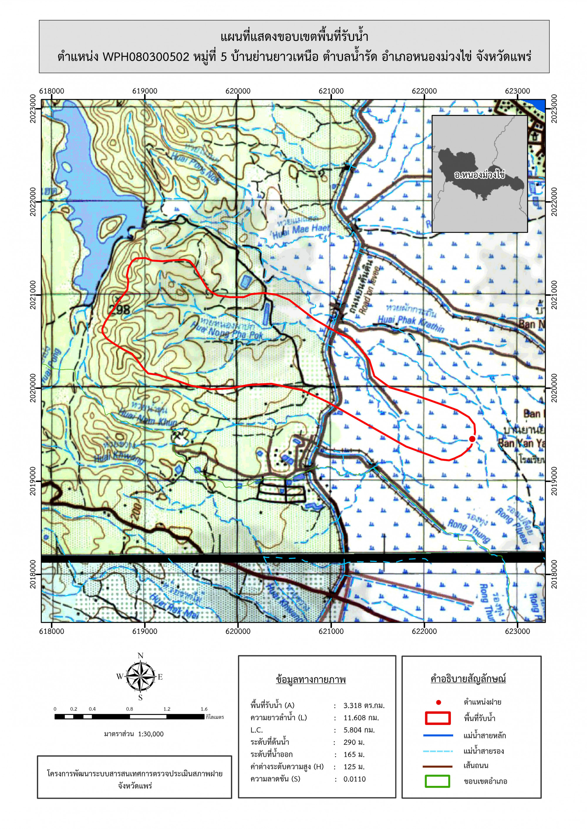 รูปภาพแผนที่แสดงขอบเขตพื้นที่รับน้ำ