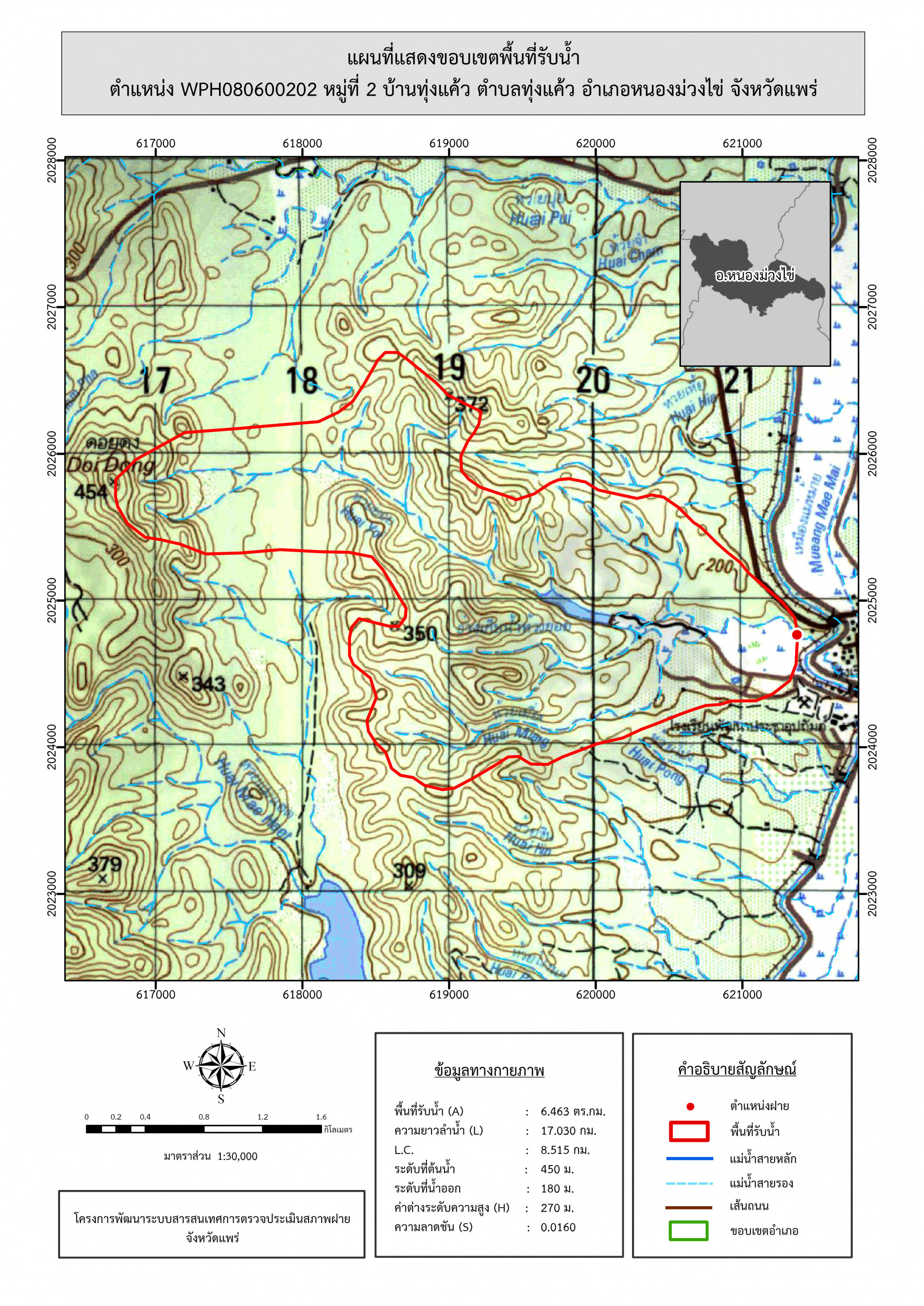 รูปภาพแผนที่แสดงขอบเขตพื้นที่รับน้ำ