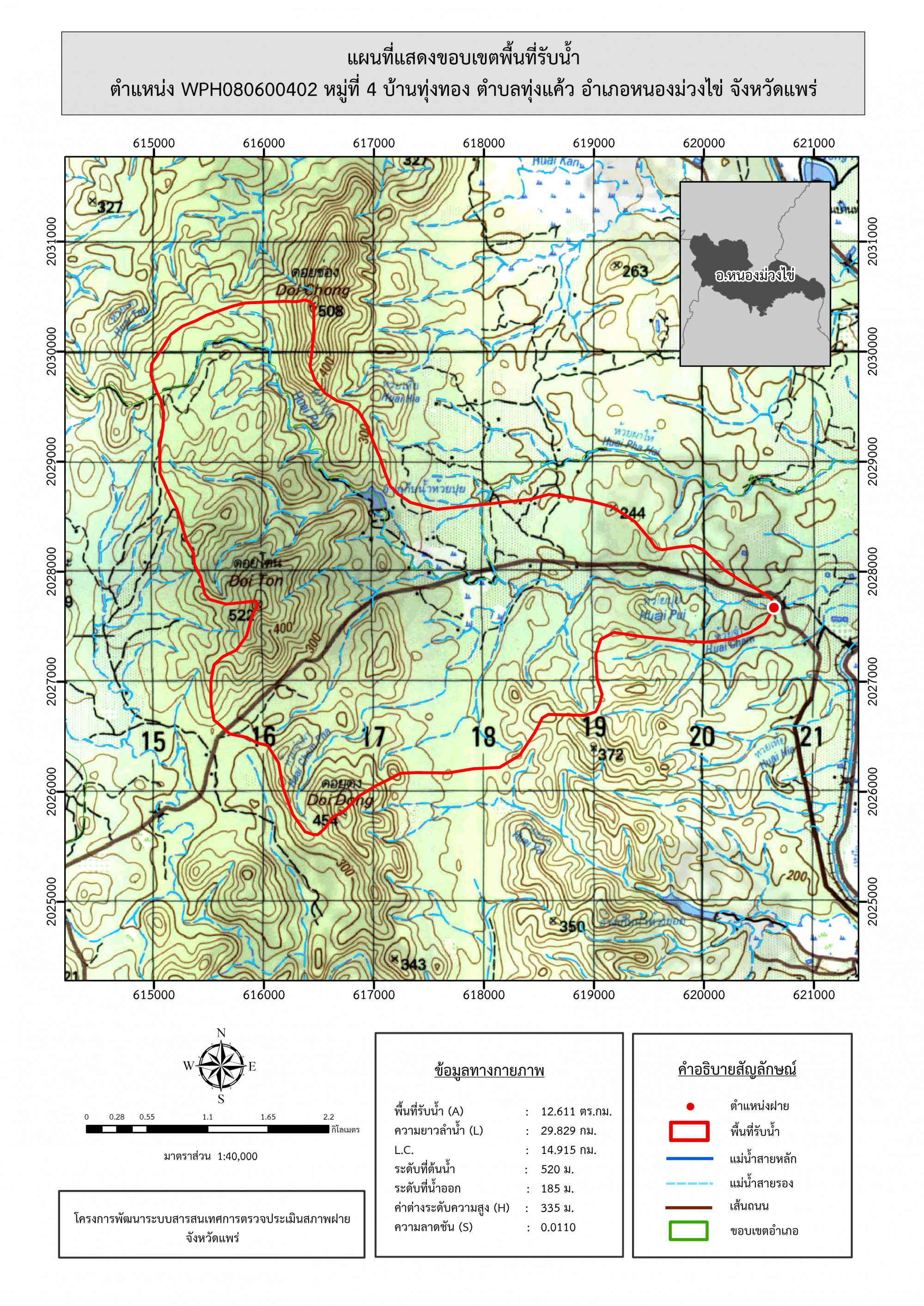รูปภาพแผนที่แสดงขอบเขตพื้นที่รับน้ำ